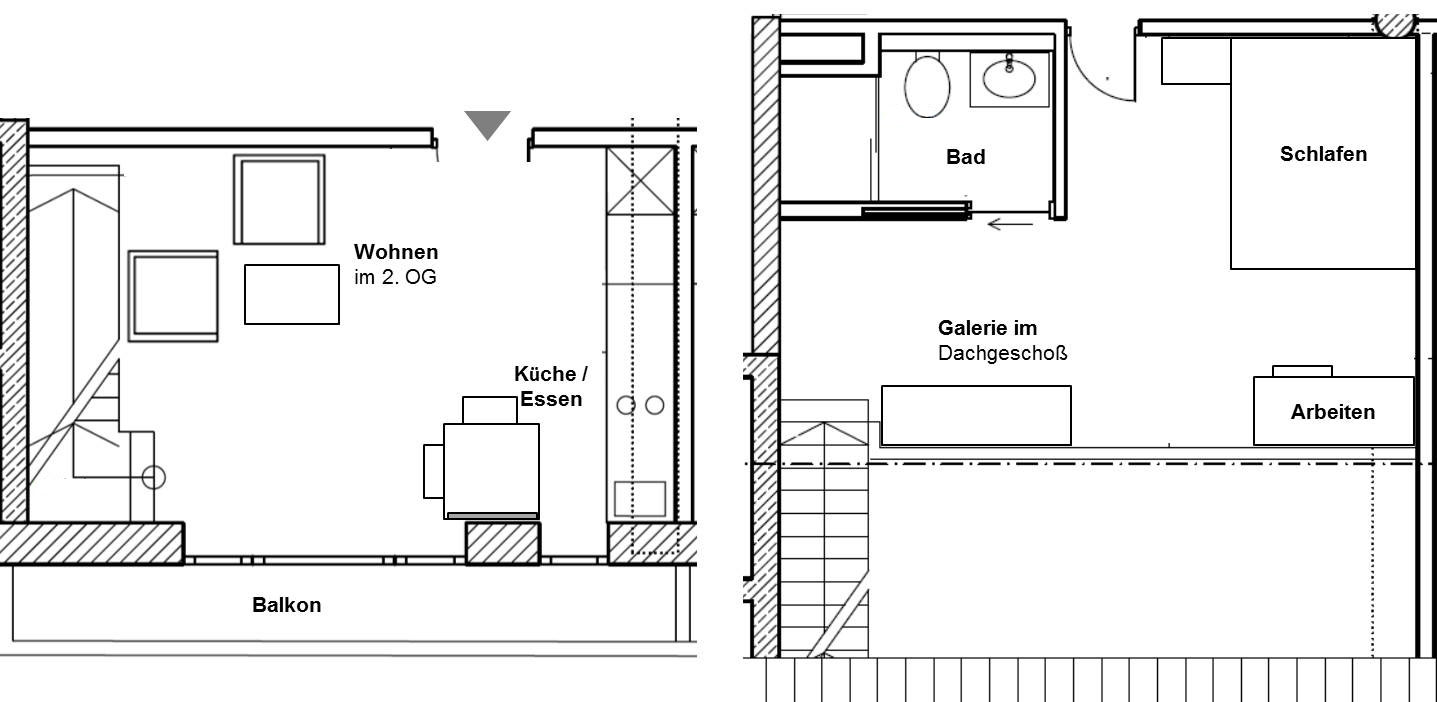 Die Größe der Kategorie Maisonette liegt bei 39 und 42 m².